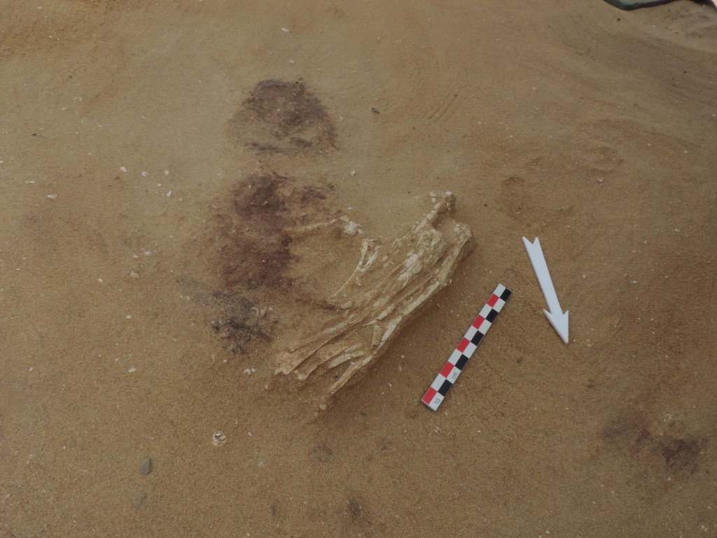 Quelques empreintes et vestiges d’aile d’oiseau mis au jour au Rozel (© D. Cliquet, MC).